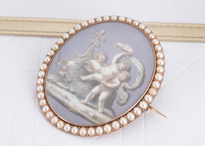 Lot 100 - A late 18th or early 19th Century oval seed pearl framed brooch
