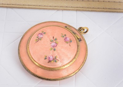 Lot 104 - An Edwardian gilt metal and guilloche enamel circular locket