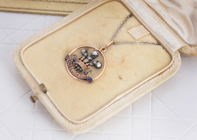Lot 107 - A regimental sweetheart diamond and enamel platinum, silver and gold pendant