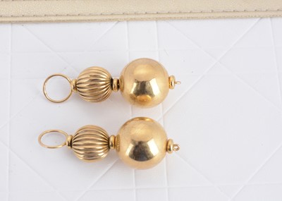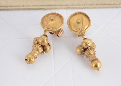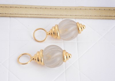 Lot 110 - A pair of continental and frosted glass 18ct gold acorn stylised drops