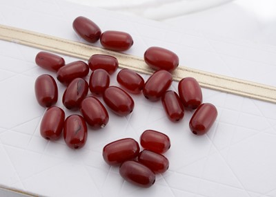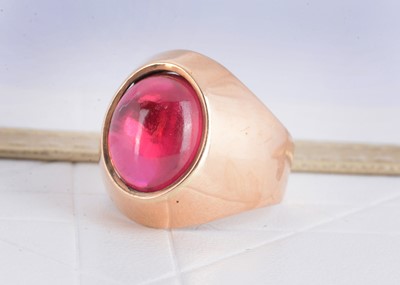 Lot 115 - A continental 14k marked cabochon synthetic ruby signet ring