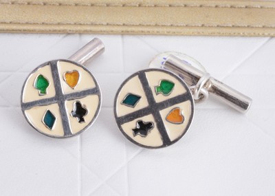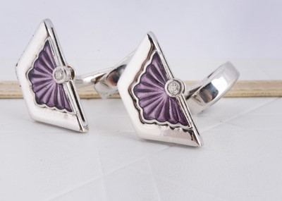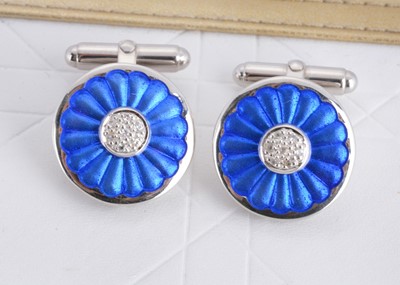 Lot 129 - A pair of contemporary silver and diamond set cufflinks by Nicole Barr