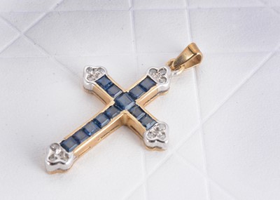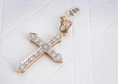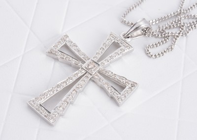 Lot 124 - A contemporary 9ct white gold and diamond set cross pendant