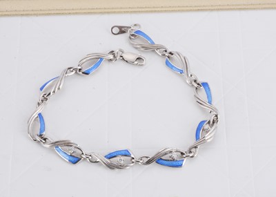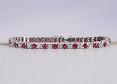 Lot 151 - A continental 750 marked white metal ruby and diamond tennis bracelet