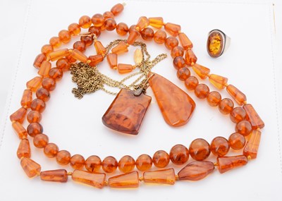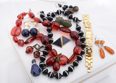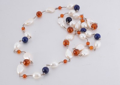 Lot 132 - A contemporary freshwater pearl, amber and lapis lazuli necklace