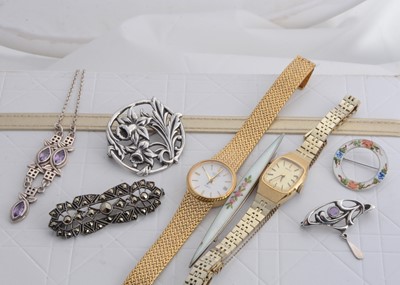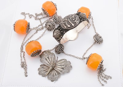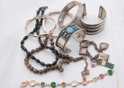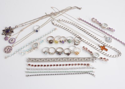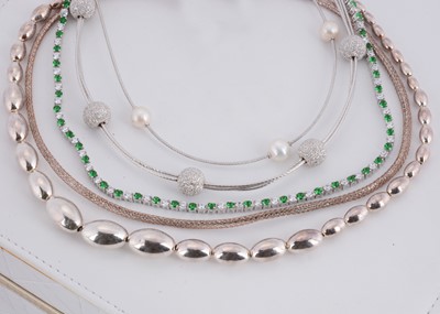 Lot 137 - A collection of silver and gem set contemporary necklaces