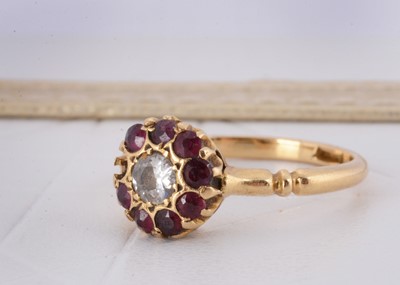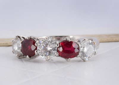 Lot 152 - A ruby and diamond five stone white metal dress ring