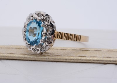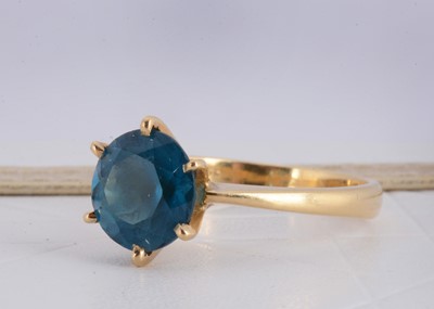 Lot 156 - A continental 750 marked yellow metal blue topaz dress ring