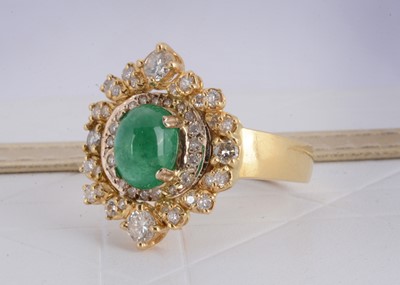 Lot 157 - A continental yellow metal emerald and diamond dress ring