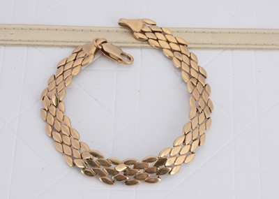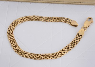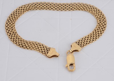 Lot 165 - An Italian 750 marked yellow metal textured mesh bracelet