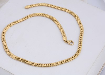Lot 161 - A continental 750 marked yellow metal flattened curb link necklace
