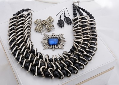 Lot 142 - A paste set chrome plated necklace and matching earring set
