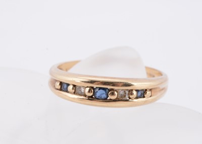 A channel set sapphire and diamond half hoop 9ct gold dress ring