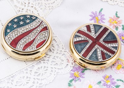 Two American 1940s Henriette spherical loose powder compacts